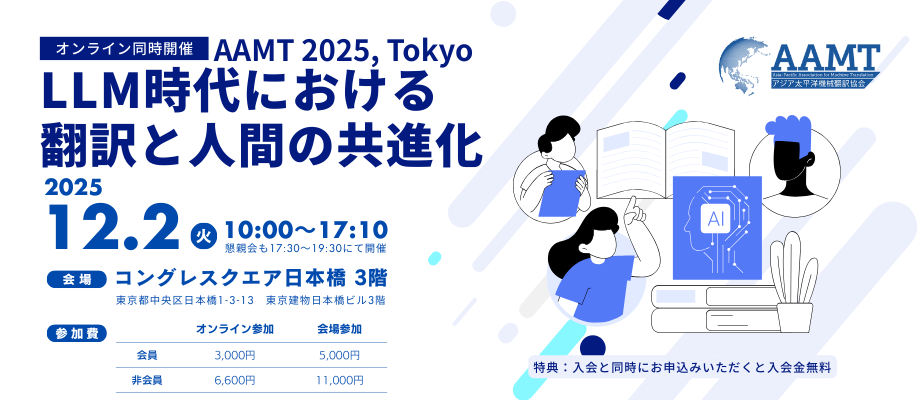 株式会社アスカコーポレーション(以下、ASCA)は、2025年12月2日(火)にコングレスクエア日本橋にて開催されるAAMT年次大会「AAMT 2025, Tokyo ~LLM時代における翻訳と人間の共進化~」にてライフサイエンス分野の翻訳業務における生成AI(LLM)活用について、ポスター発表を実施いたします。