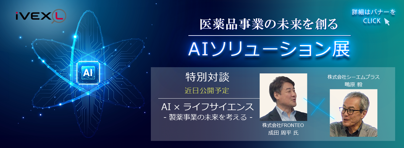 株式会社シーエムプラスは、オンラインでライフサイエンス系企業の製品・サービスを探せる情報ポータル「iVEXL (アイベックスエル)」にて、オンライン展示会『医薬品事業の未来を創る AIソリューション展』を開催します。