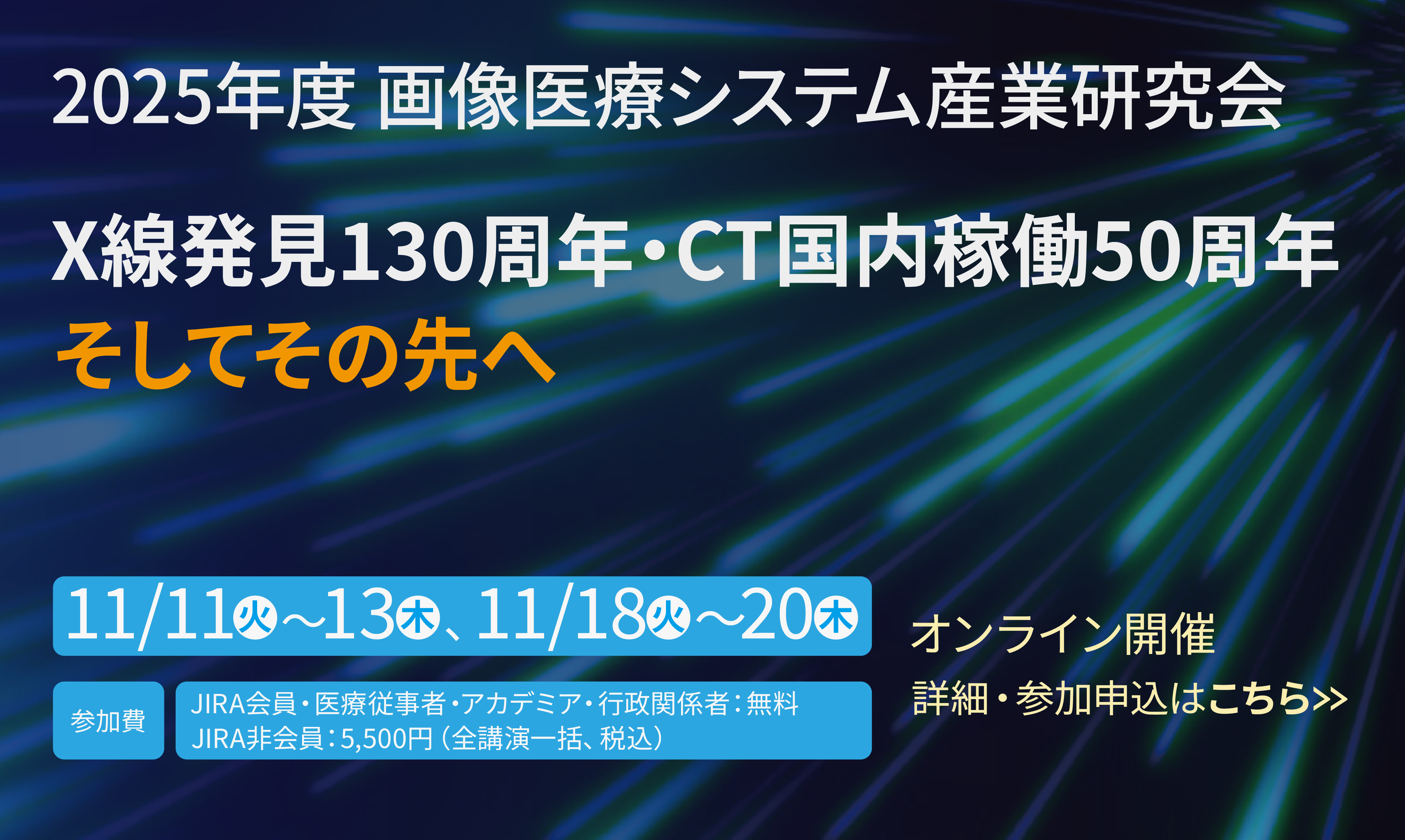 一般社団法人日本画像医療システム工業会(JIRA)では「画像医療システム産業発展に向けて」をメインテーマとする「JIRA画像医療システム産業研究会」を毎年企画・開催しております。