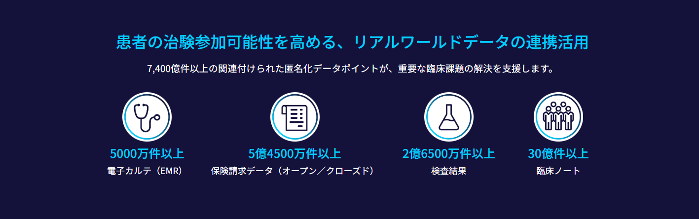 業界最大級を誇るリアルワールドデータアセットで、臨床試験計画を強力に支援いたします。