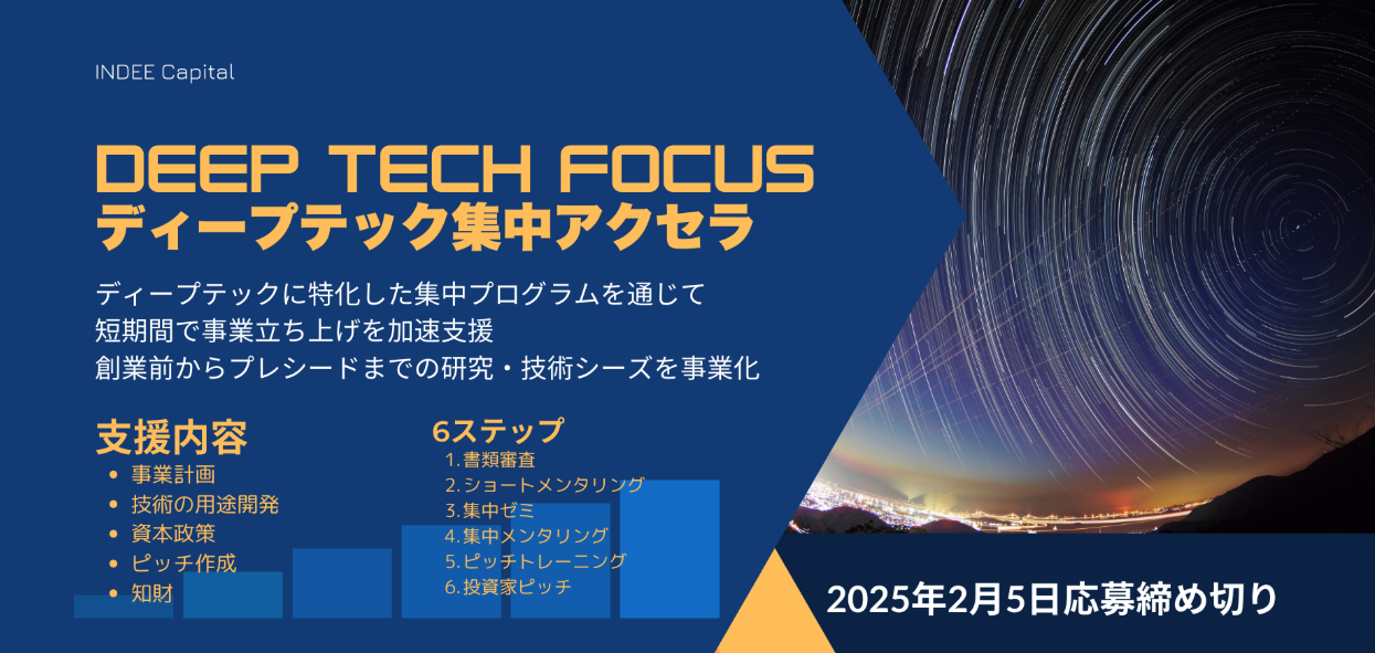 ◆ ディープテック(医薬品・医療機器・材料・AI・ロボティクス・エネルギー・等々)限定