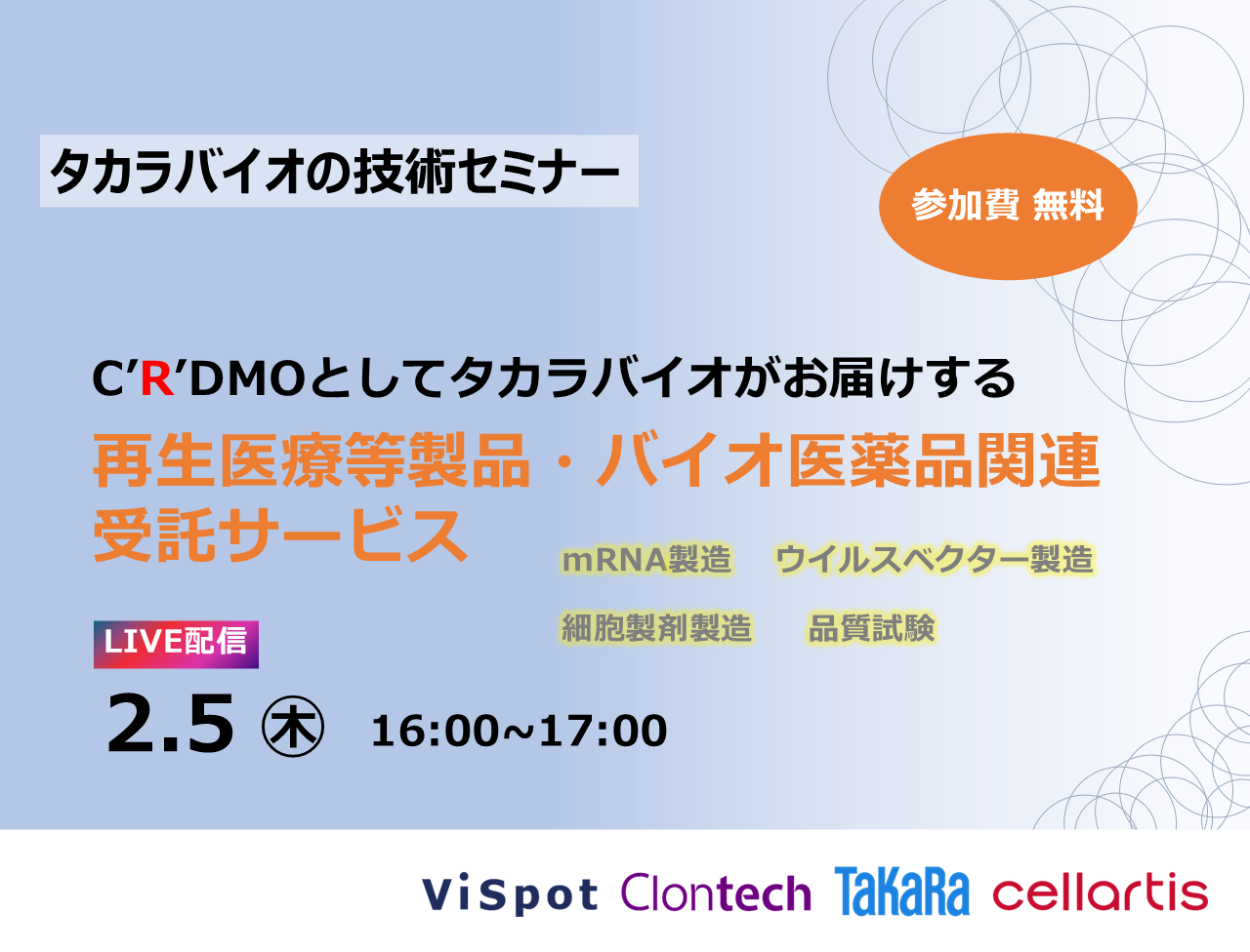 GMP準拠の設備と経験豊富な専門スタッフによる高品質な製造体制で、多様なモダリティに応える当社のサービスを、ぜひ本セミナーでご確認ください。