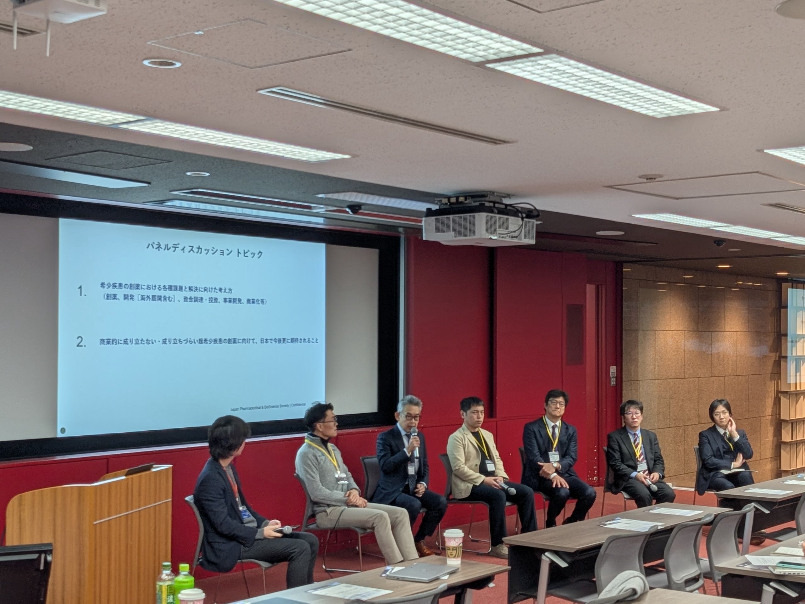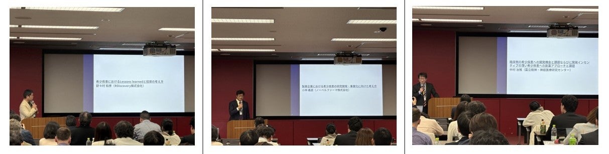 イベント前半では、「希少疾患に向けた創薬」をテーマに、行政、患者会、スタートアップの立場から講演が行われました。希少疾患創薬を取り巻く政策的支援のあり方や、患者発の取り組みが持つ可能性、研究開発の現場における課題など、多角的な視点からの問題提起がなされ、会場からも多くの質問が寄せられるなど活発な議論が展開されました。