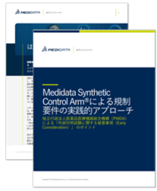 本ホワイトペーパーでは、この規制動向を背景に、ECAが持つ可能性と課題を整理するとともに、メディデータ独自のSynthetic Control Arm®(SCA)が、規制当局の期待にどのように応え、実務面のハードルを克服するのかを解説します。規制対応レベルの高品質データを活用することで、試験設計の柔軟性向上、開発期間の短縮、患者負担の軽減を実現する、次世代ECA活用の実践的アプローチをご紹介します。右記のフォームよりダウンロードいただくことで英語版・日本語版の両方をご覧いただけます。