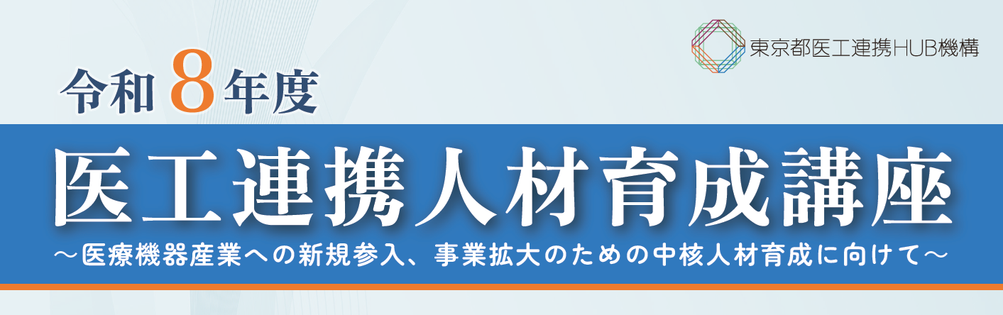 東京都医工連携HUB機構では、都内中小企業を対象に、医療機器産業への参入及び事業拡大に向けた医工連携人材育成講座(全10回)を開講します。