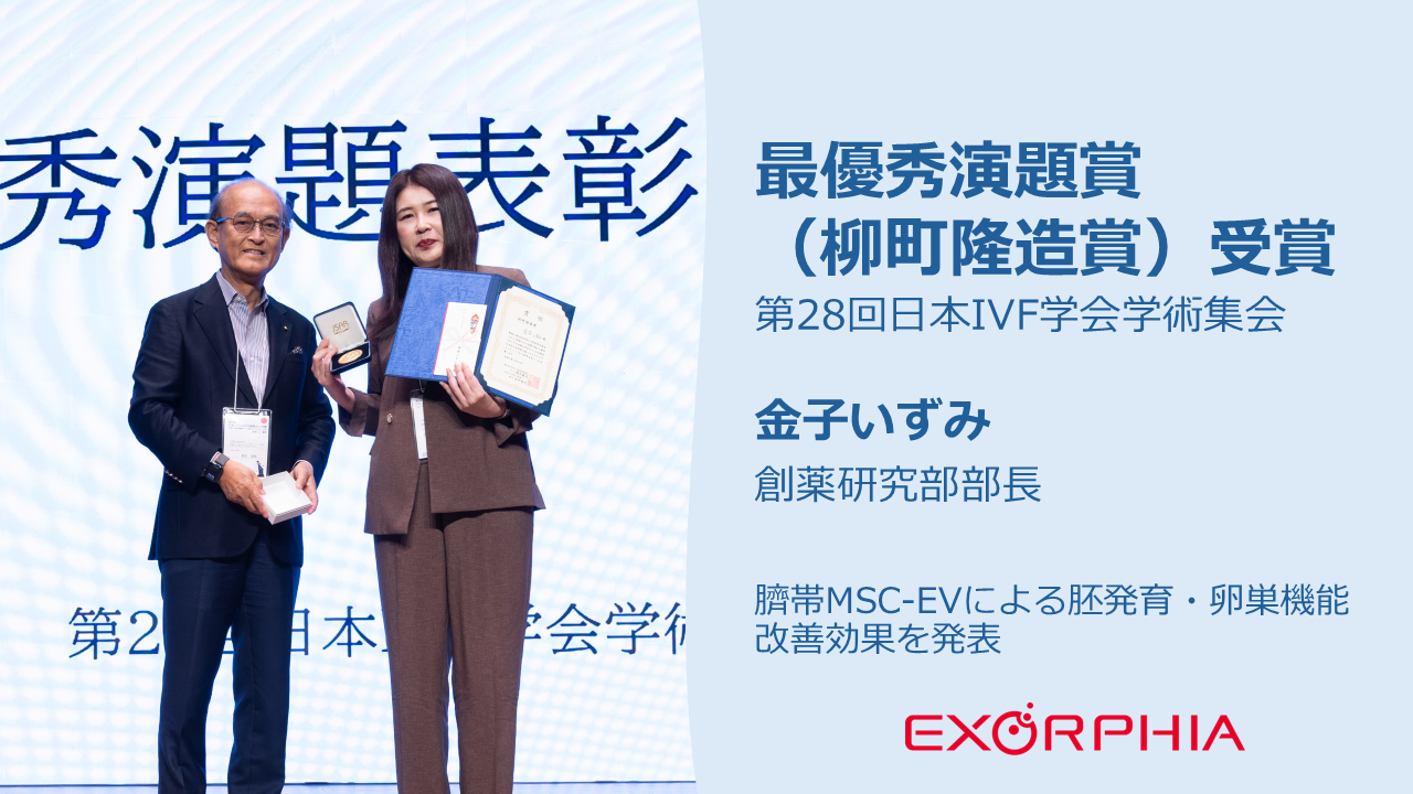 最優秀演題賞(柳町隆造賞)受賞のお知らせ ― 第28回日本IVF学会学術集会にて、当社研究員 金子いずみが発表 ― 投稿日:2025.10.20 投稿者:株式会社EXORPHIA
