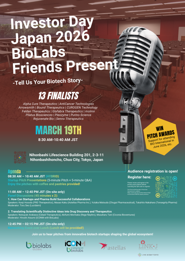 Life Science Innovation Network Japan (LINK-J) , BioLabs and Mitsui Fudosan Co., Ltd. announce that they have been selected for the Tokyo Metropolitan Government's "TIB CATAPULT (Cluster Creation Project to Challenge Global Innovation)" program and have launched the startup incubation cluster, "LINK-BioBAY TOKYO". This collaboration, with expertise in Japan and the US, will support the growth of Japanese life science startups globally.