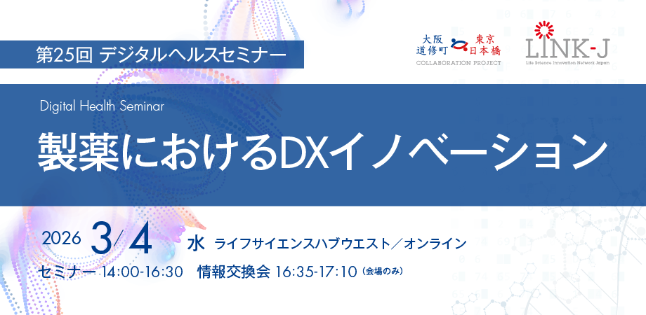 関西でのライフサイエンスのさらなる発展を目指し、当協会は、LINK-J、大阪商工会議所及び関西健康・医療創生会議の協力を得て、デジタルヘルスセミナーをシリーズで行うこととなり、2019年9月の第1回以降これまで24回のセミナーを開催しました。