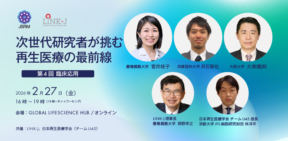 LINK-Jでは2024年7月、日本再生医療学会(チームU45)と共同で再生医療の将来を担う研究者にスポットを当てる新しいイベントシリーズを開始しました。