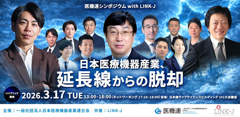 本シンポジウムでは「延長線からの脱却」をテーマに、日本の医療機器産業が2040年に向けていかなる成長のモデルを描くべきかを議論します。共創を理念にとどめず、実装へと進めるための具体的な挑戦とは何か。立場を越えた率直な対話を通じ、その第一歩を共有します。皆様のご参加を心よりお待ちしております。