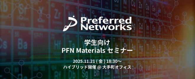 株式会社Preferred Networks 【学生向け】PFN Materialsセミナー担当 materials_biz@preferred.jp