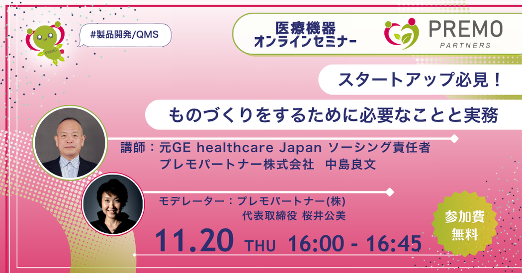 医療機器スタートアップや、これから医療機器分野へ参入を検討している企業の皆さまを対象とした無料オンラインセミナーです。