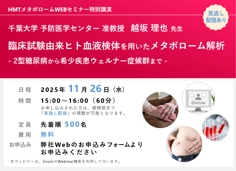 ヒューマン・メタボローム・テクノロジーズ株式会社 セミナー窓口 hmt_seminar@humanmetabolome.com