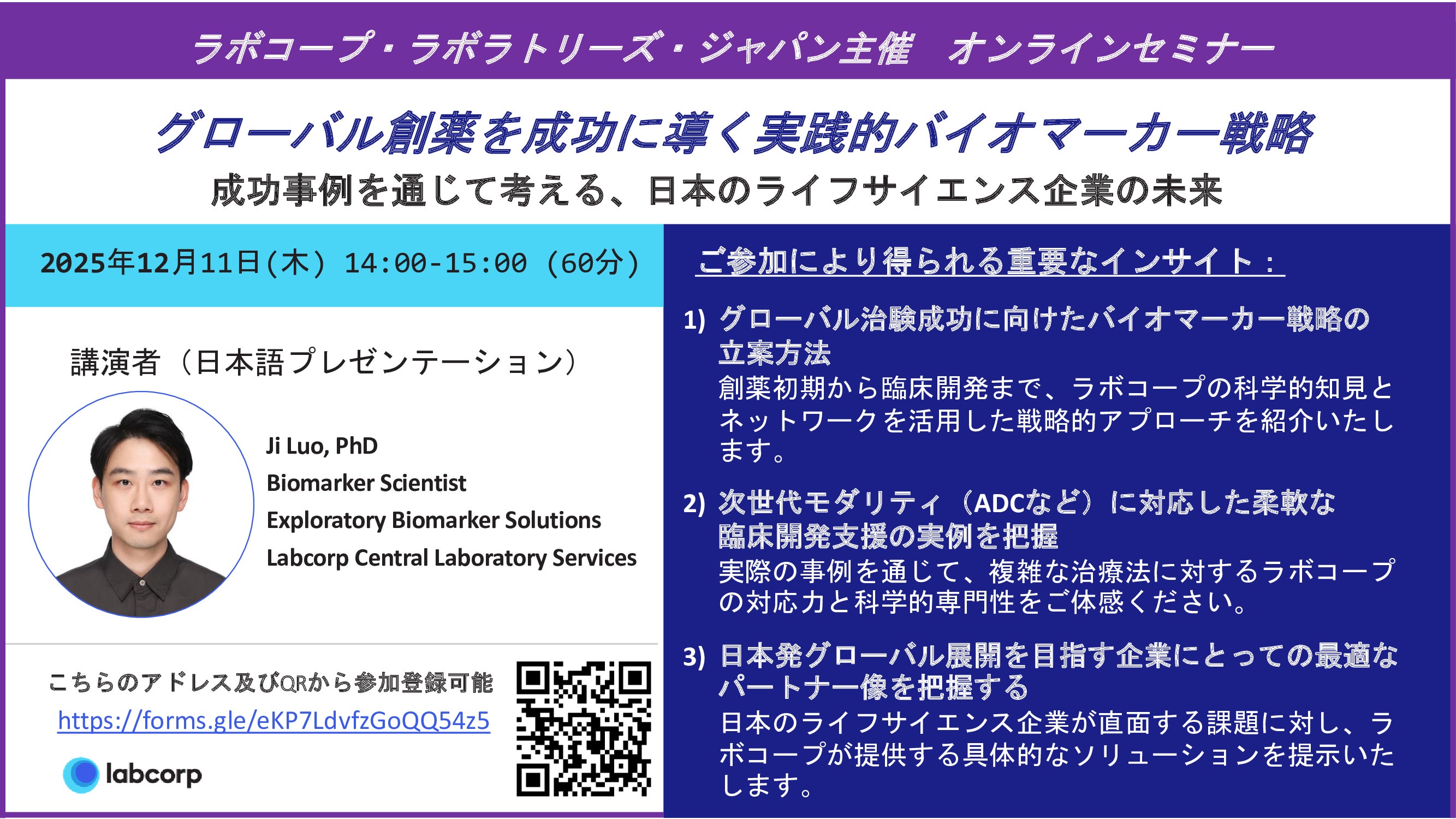 🔹 登壇者:Ji Luo, PhD(Biomarker Scientist, Exploratory Biomarker Solutions, Labcorp Central Laboratory Services)