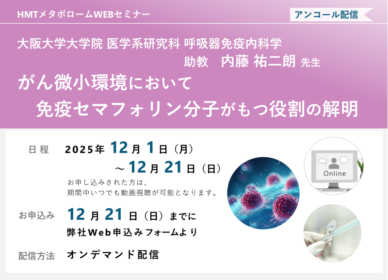 ヒューマン・メタボローム・テクノロジーズ株式会社 セミナー窓口 hmt_seminar@humanmetabolome.com