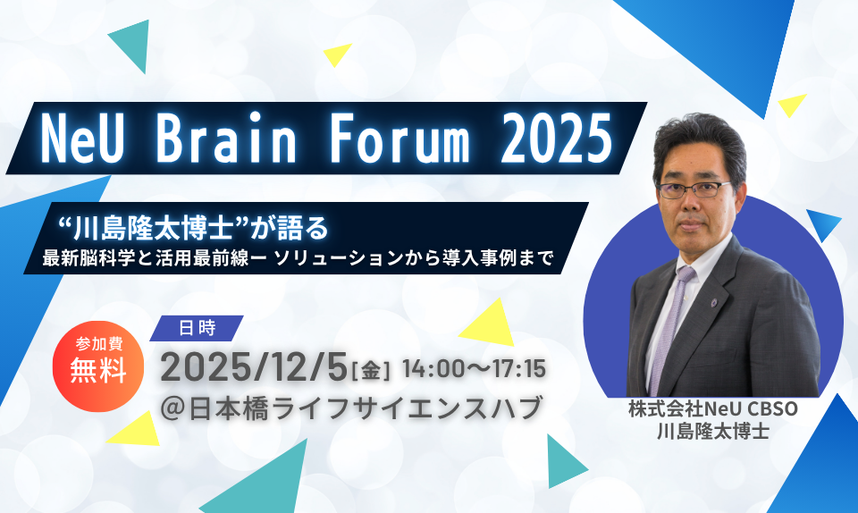 国立大学法人東北大学と株式会社日立ハイテクのジョイントベンチャーである株式会社NeU(本社:東京都千代田区、代表取締役:禰寝義人、以下NeU)は、最先端の脳科学ソリューションや導入・活用事例を紹介する自社主催セミナー「NeU Brain Forum 2025」を開催いたします。