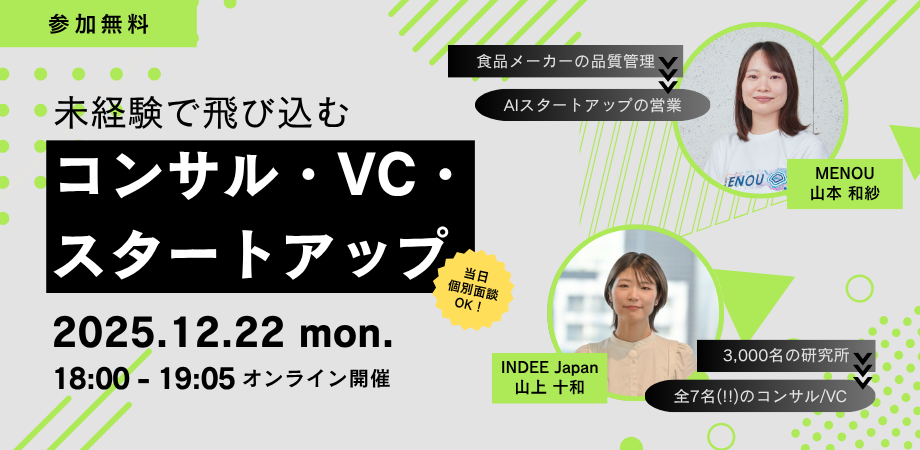 ■ 対象者:スタートアップへの転職に迷っている方、未経験業界・職種の転職に迷っている方、キャリアについて考えている方