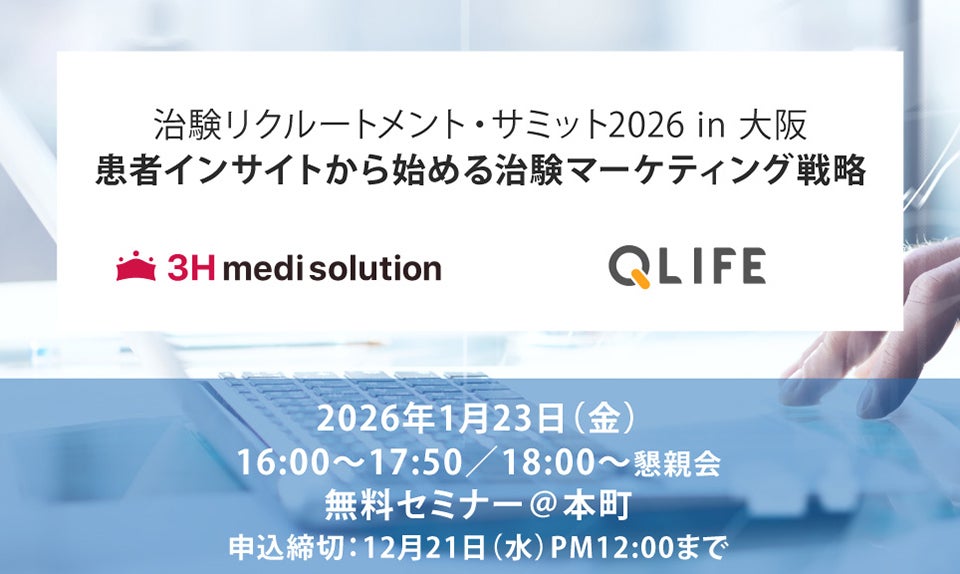 製薬企業やCROにて治験関連業務に携わる皆さまを対象に、大阪にて「治験リクルートメント・サミット2026」を開催することとなりましたのでお知らせいたします。
