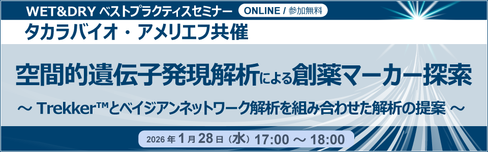 | 17:20~17:50 | 空間シングルセルデータを活かした創薬マーカー探索の戦略 アメリエフ株式会社 露崎 隼 空間シングルセルデータを用いた、細胞種アノテーションや空間構造の可視化など基本的な解析手法に加え、創薬マーカーを探索するアプローチをご紹介します。特に、遺伝子間の因果関係を推定するベイジアンネットワーク解析を効果的に活用するためのストラテジーについても取り上げ、空間情報を活かす具体的な解析手法をご提案します。 |