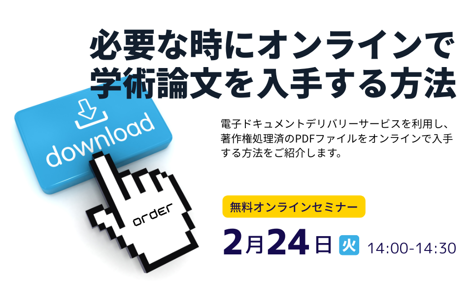 本セミナーでは、その概要と操作方法、取得した論文PDFを共有・管理できるサービスをご紹介します。