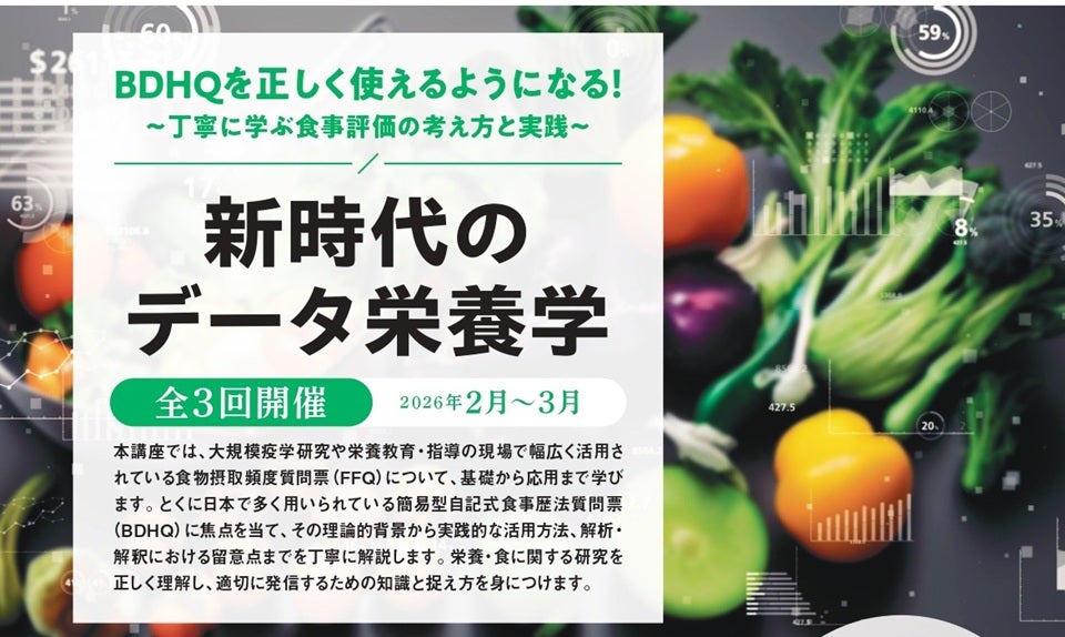 とくに日本で多く用いられている簡易型自記式食事歴法質問票(BDHQ)に焦点を当て、その理論的背景から実践的な活用方法、解析・解釈における留意点までを丁寧に解説します。栄養・食に関する研究を正しく理解し、適切に発信するための知識と捉え方を身につけます。