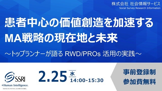 SSRIは2月25日㈬に、Zoomウェビナー形式のオンラインセミナー「患者中心の価値創造を加速する MA戦略の現在地と未来」を開催いたします。