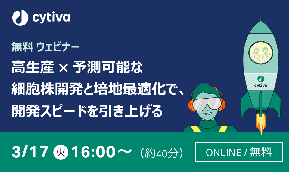 本ウェビナーでは、Cytivaの細胞培地プラットフォームと Asimov の CHO Edge システムを組み合わせることで、モノクローナル抗体および多特異性抗体に対して、14週間で 8–12 g/L の高力価クローンを安定的に作製する仕組みについて解説します。