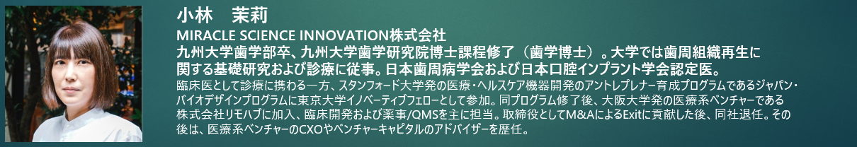 ・ 小林 茉莉 MIRACLE SCIENCE INNOVATION株式会社