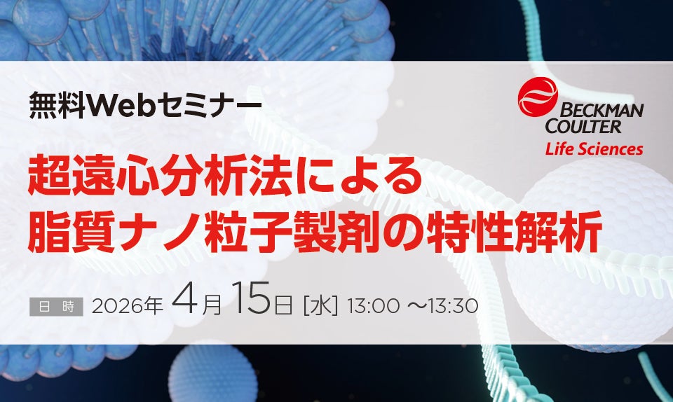 本セミナーでは、分析用超遠心機Optima AUC を用いた LNP 製剤の特性解析の原理とデータ事例を紹介するとともに、AUC と他手法を組み合わせることで信頼性の高い総合的な特性評価を実現するアプローチについても解説します。