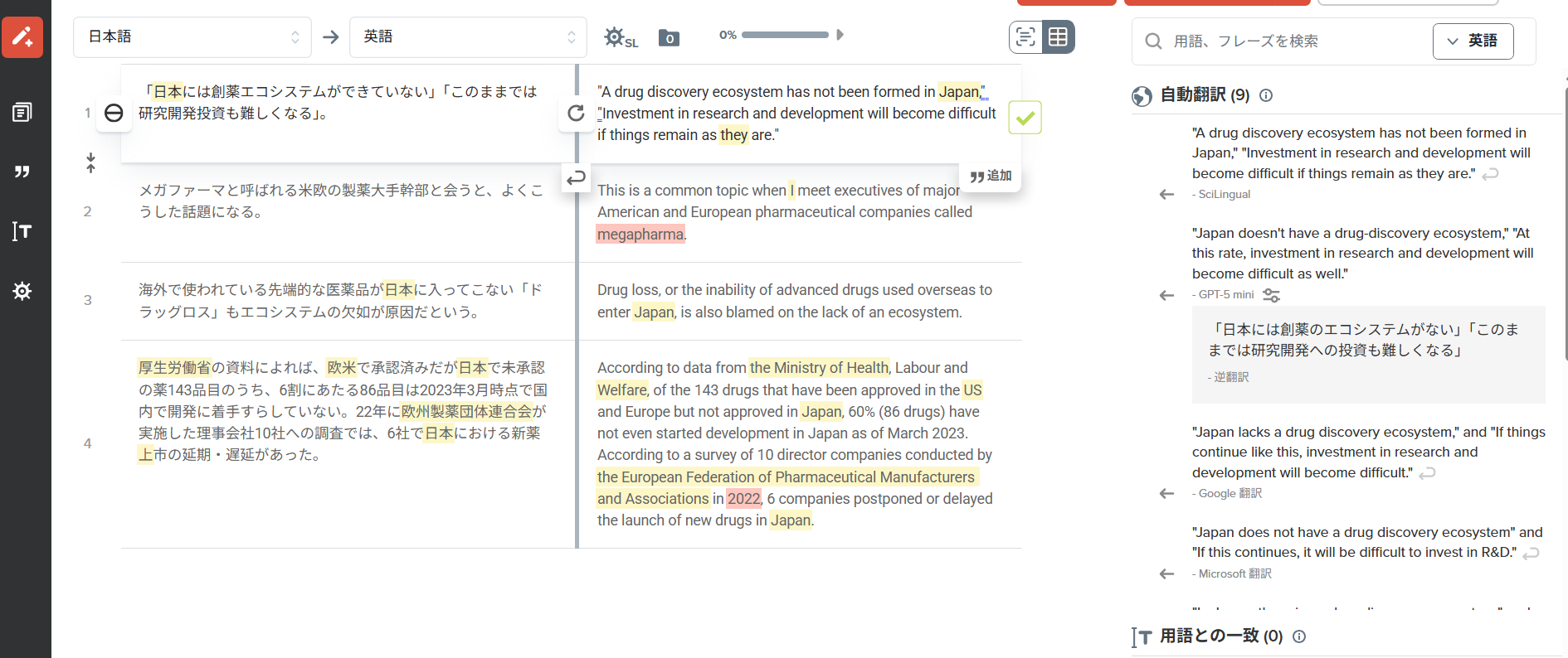 ライフサイエンス分野に特化したAI翻訳エンジンを搭載