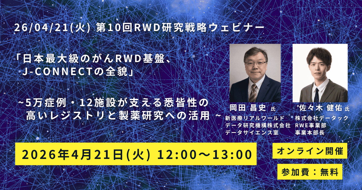 第10回RWD研究戦略ウェビナー「日本最大級のがんRWD基盤、J-CONNECTの全貌」 ~5万症例・12施設が支える悉皆性の高いレジストリと製薬研究への活用 ~