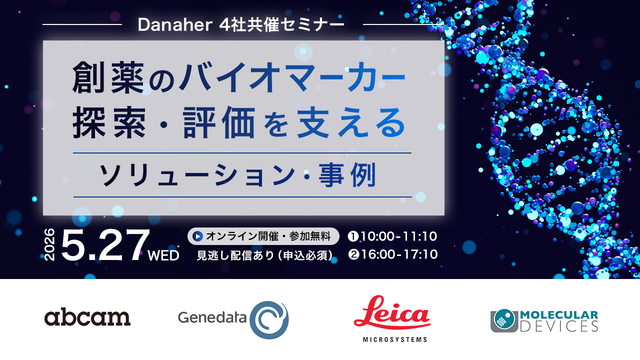 本ウェビナーでは、アルツハイマー病およびがん免疫研究を題材に、Danaher グループ各社のソリューションを通じて、データ統合、空間解析、AI活用、再現性の高い試薬、ハイスループット解析といった観点から、バイオマーカー研究を支える実践的アプローチをご紹介します。探索・検証研究の生産性向上と再現性確保をどのように実現し、創薬研究全体の意思決定を加速できるのか、その具体的な事例を共有します。