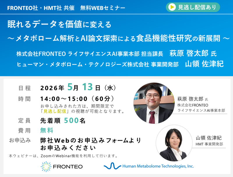 株式会社FRONTEO、ヒューマン・メタボローム・テクノロジーズ株式会社 共催