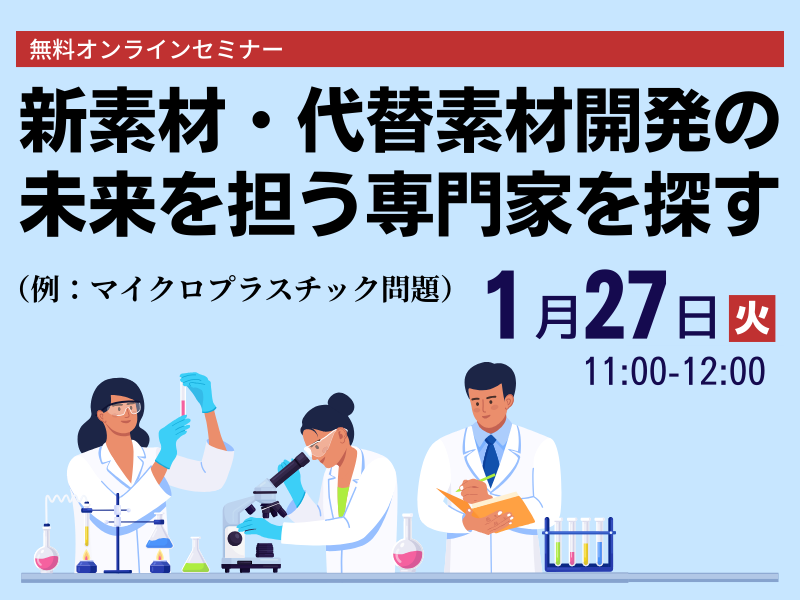 本セミナーでは、新素材・代替素材の製造技術の専門家を論文から探索する方法を例に、JDream Expert Finderのサービス概要と機能をご紹介いたします。