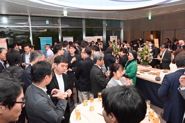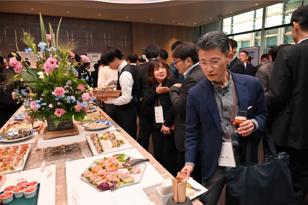 2日目の会場「室町三井ホール&カンファレンス」には、業界団体やバイオベンチャーによるブースが出展。プログラム終了後には立食形式の懇親会および名刺交換会が行われ、リアル参加者約200名によるネットワーキングの場となりました。
