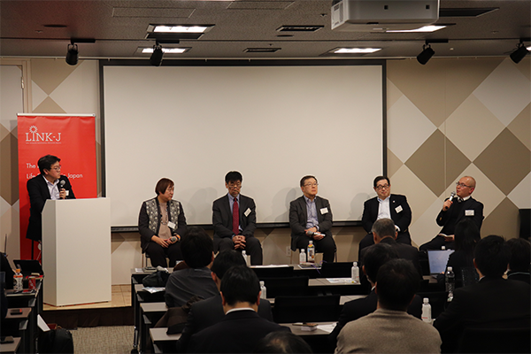 お二方のご講演後にはLINK-J高橋がモデレーターを務め、DIA Japan/Swedish Orphan Biovitrum Japan 株式会社 高橋 希人氏 と三井不動産/LINK-J 加納 浩之氏をパネリストに加えてパネルディスカッションを行いました。会場からはリアルなご質問を多数いただき、登壇者と参加者の双方向のコミュニケーションで議論がさらに盛り上がりました。